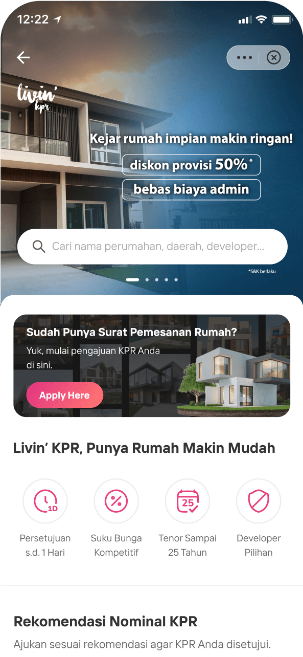 Livin'KPR is a cutting-edge home financing application designed to revolutionize the way individuals approach home loans. The goal was to create an intuitive, user-friendly platform that simplifies the complex process of securing a home loan while providing valuable tools and resources to help users make informed decisions.