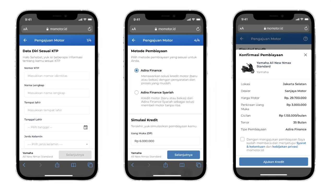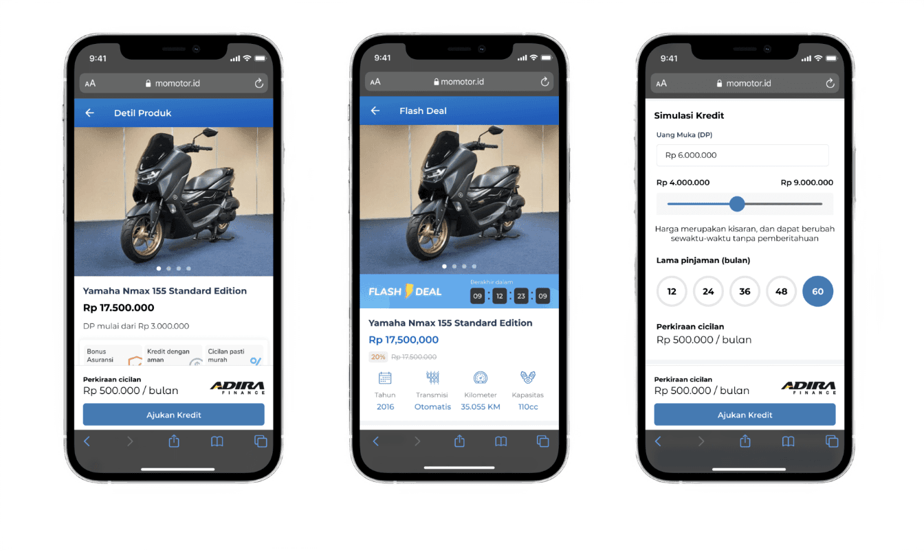 momotor.id is a platform designed for purchasing motorcycles online from Adira Finance company. As a UI/UX Designer, my responsibility is to carry out a revamp of their website to enhance its usability and, hopefully, boost sales on momotor.id